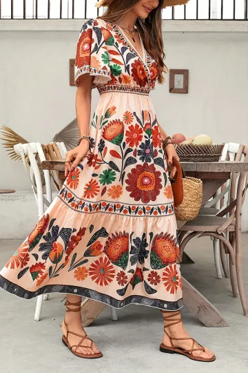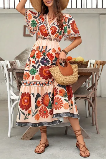 V-neck floral print dress