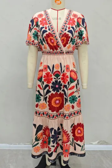 Wholesale V-neck floral print dress