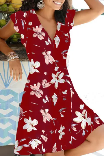 Wholesale Floral Print Slim Women's Short Sleeve Dress