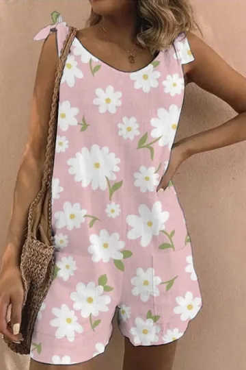Wholesale Floral Print Summer Casual Sleeveless Romper