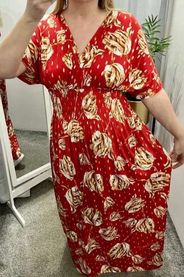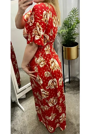 Wholesale Floral Print V Neck Maxi Dress Short Sleeve