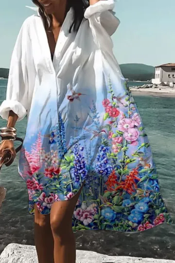 Wholesale Floral V Neck Loose Casual Swing Dress.