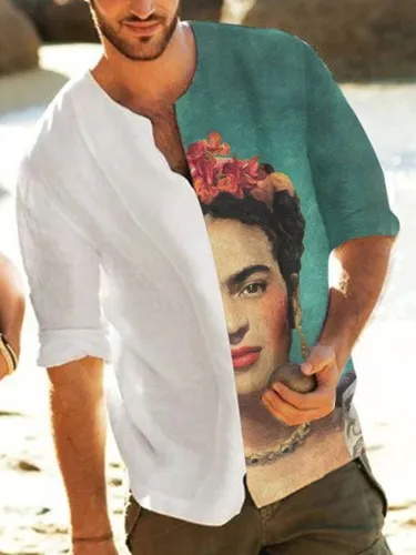Frida Kahlo Print V-Neck Long Sleeve Shirt