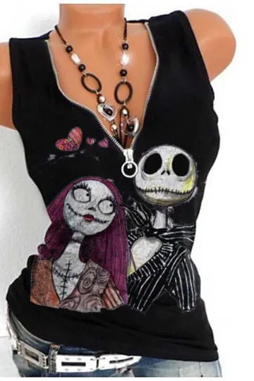 Wholesale Gothic Graphic V-Neck Zipper Tank Top