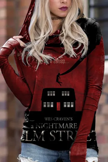 Wholesale Gothic Horror Nightmare Print Hooded Sweatshirt
