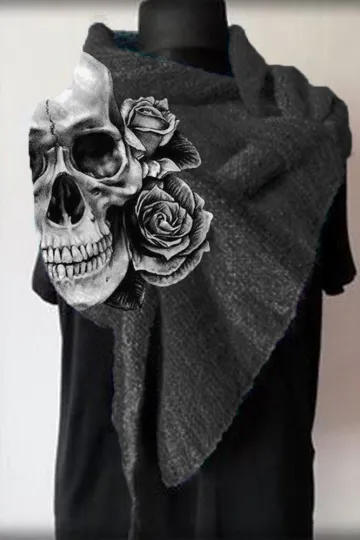 Gothic Skull Rose Print Fashion Scarf
