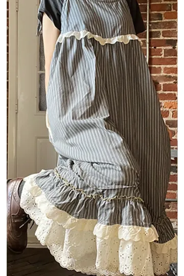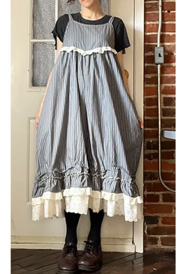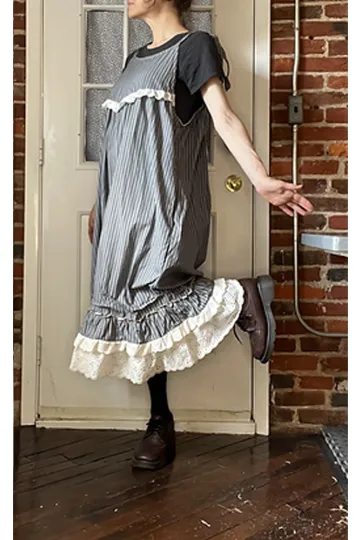Gray Stripe Lacy Babydoll Jumpsuit