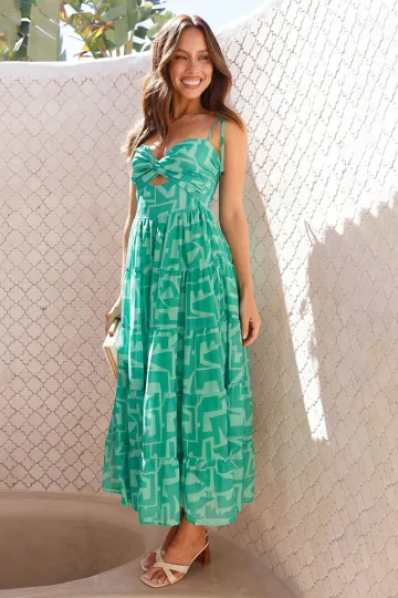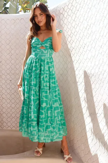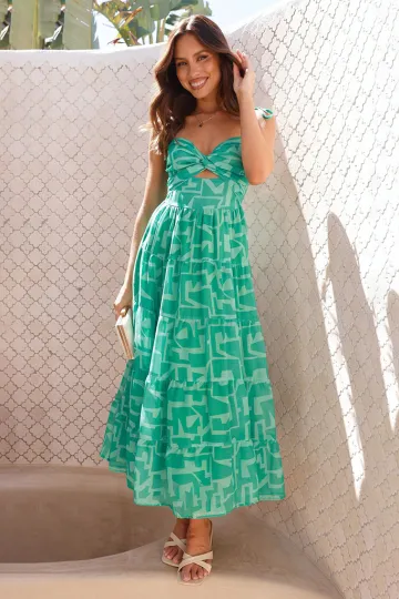 Green graphic print seaside vacation sexy hot girl suspender dress