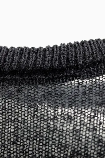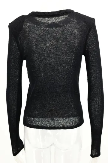 Hollow Knit Sweater Solid Color Casual Long Sleeve Top