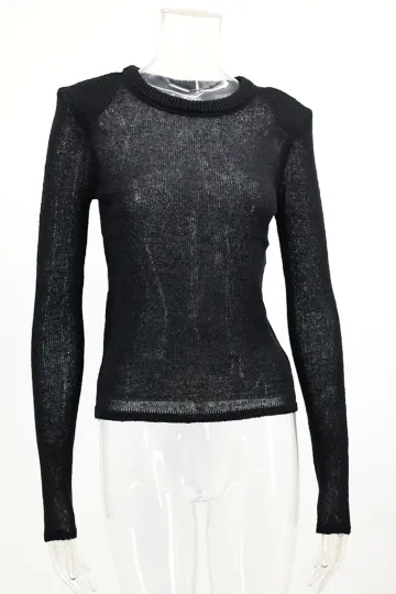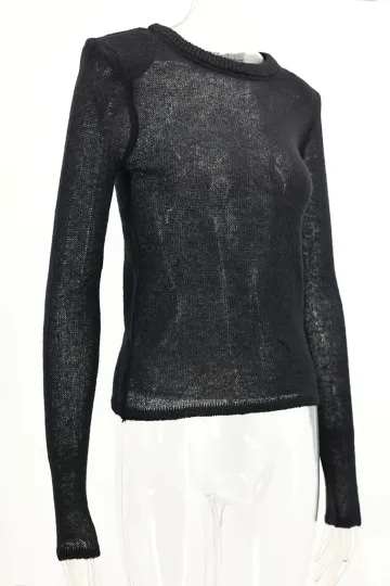 Wholesale Hollow Knit Sweater Solid Color Casual Long Sleeve Top