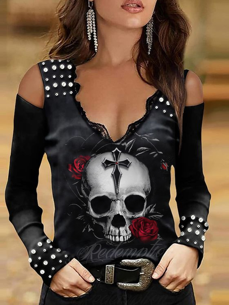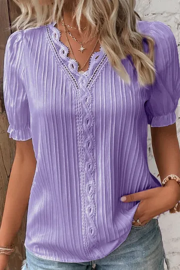 Hollowed Out Lace Short Sleeve Shirt Blouse