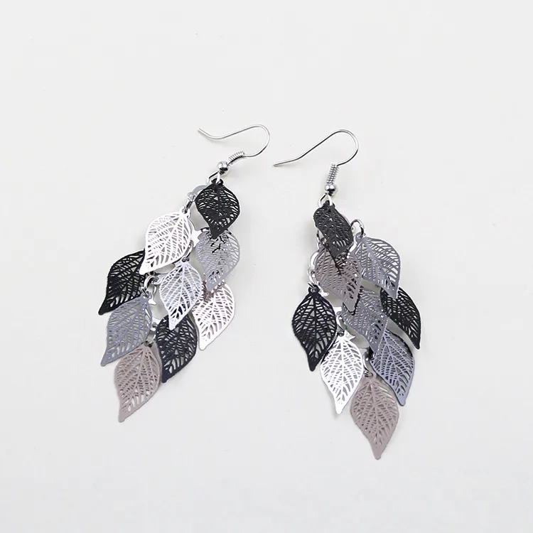 Wholesale wholesale jewelry 1 pair simple style leaf metal drop earrings