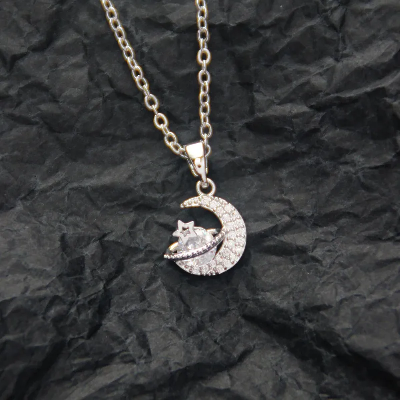 Wholesale Jewelry Casual Elegant Basic Moon Heart Shape Bow Knot Titanium Steel Copper Zircon Plating Inlay Pendant Necklace
