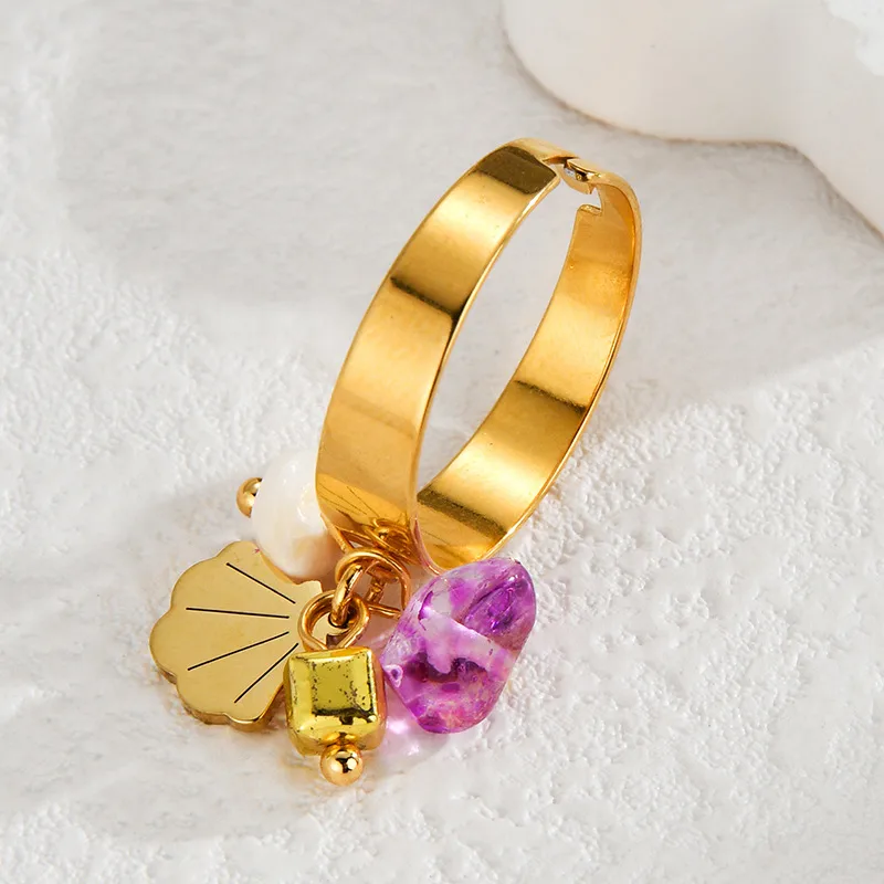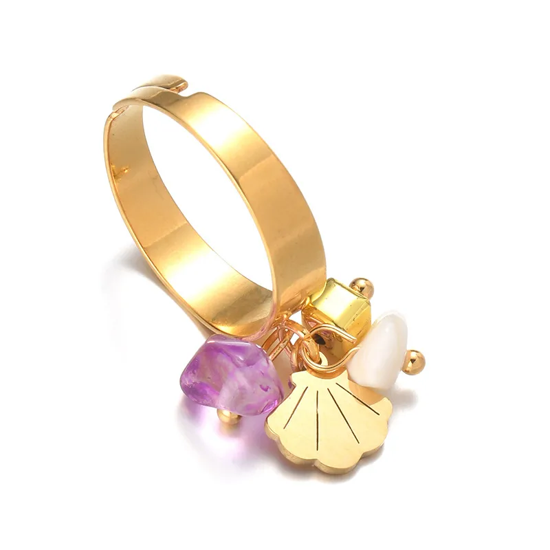 Wholesale Jewelry Casual Simple Style Streetwear Shell Titanium Steel Plating Open Rings