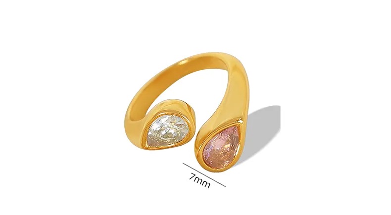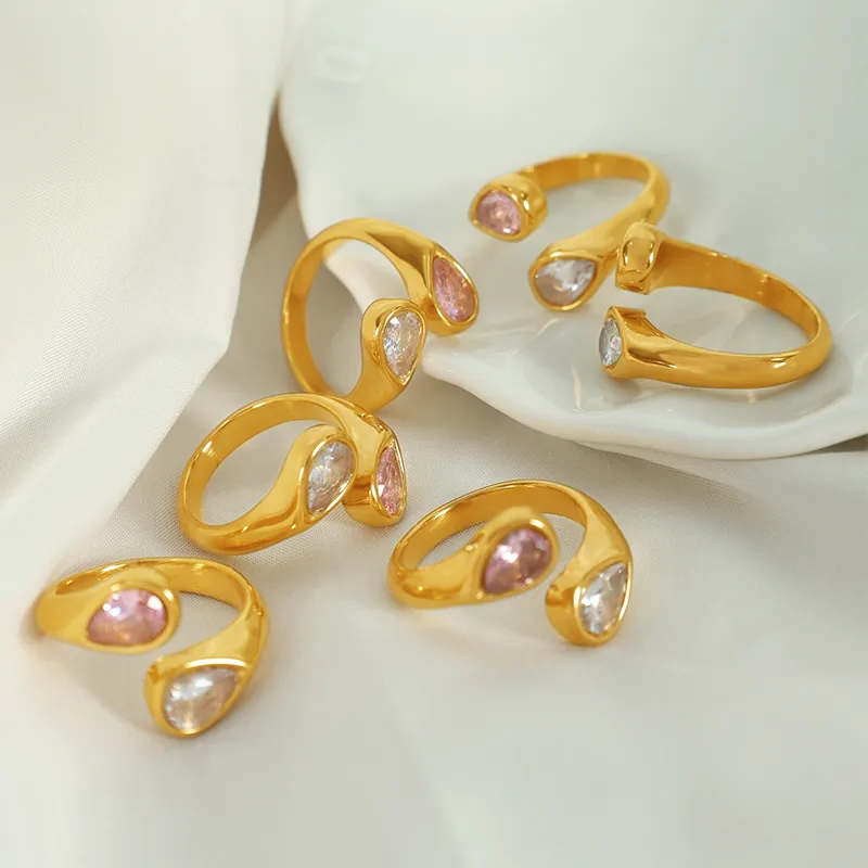Wholesale Jewelry Elegant Vintage Style Luxurious Water Droplets Titanium Steel Zircon 18K Gold Plated Plating Metal Inlay Open Rings
