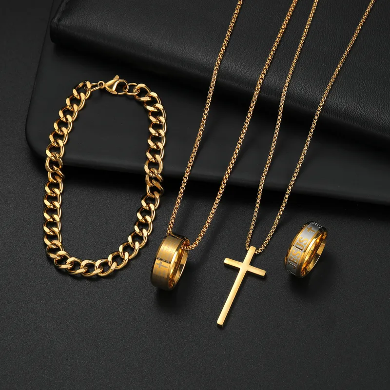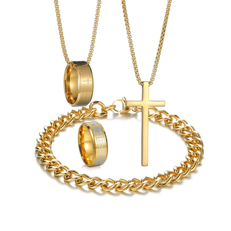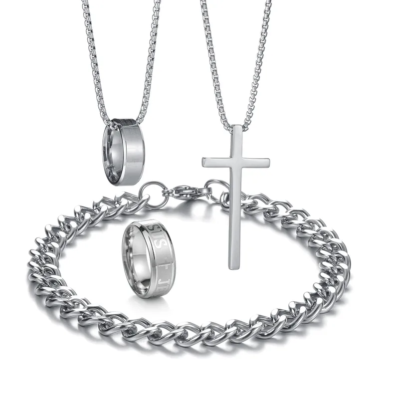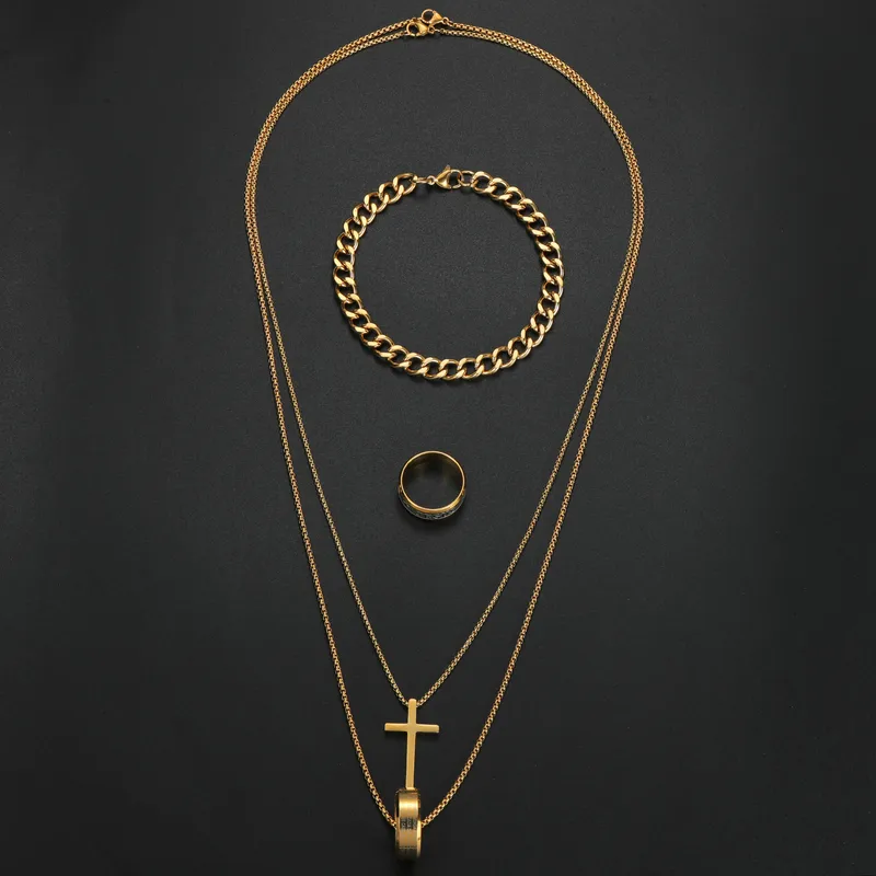 Wholesale Jewelry Hip-Hop Retro Letter 304 Stainless Steel Polishing Jewelry Set