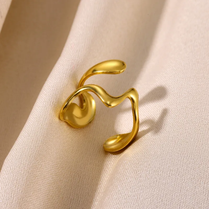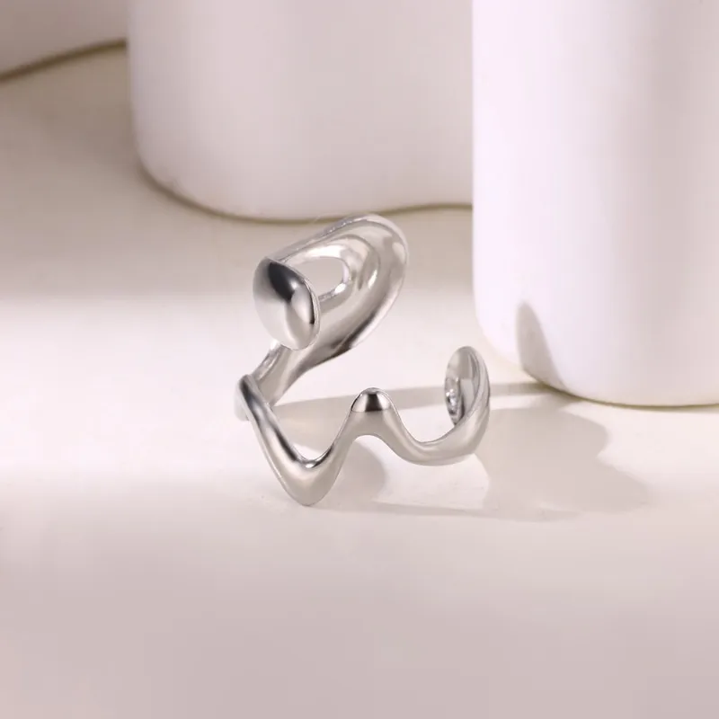 Wholesale Jewelry IG Style Vintage Style Simple Style Waves 304 Stainless Steel Open Rings