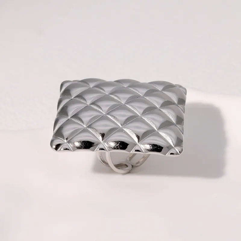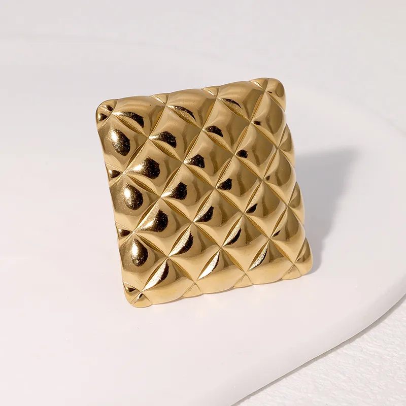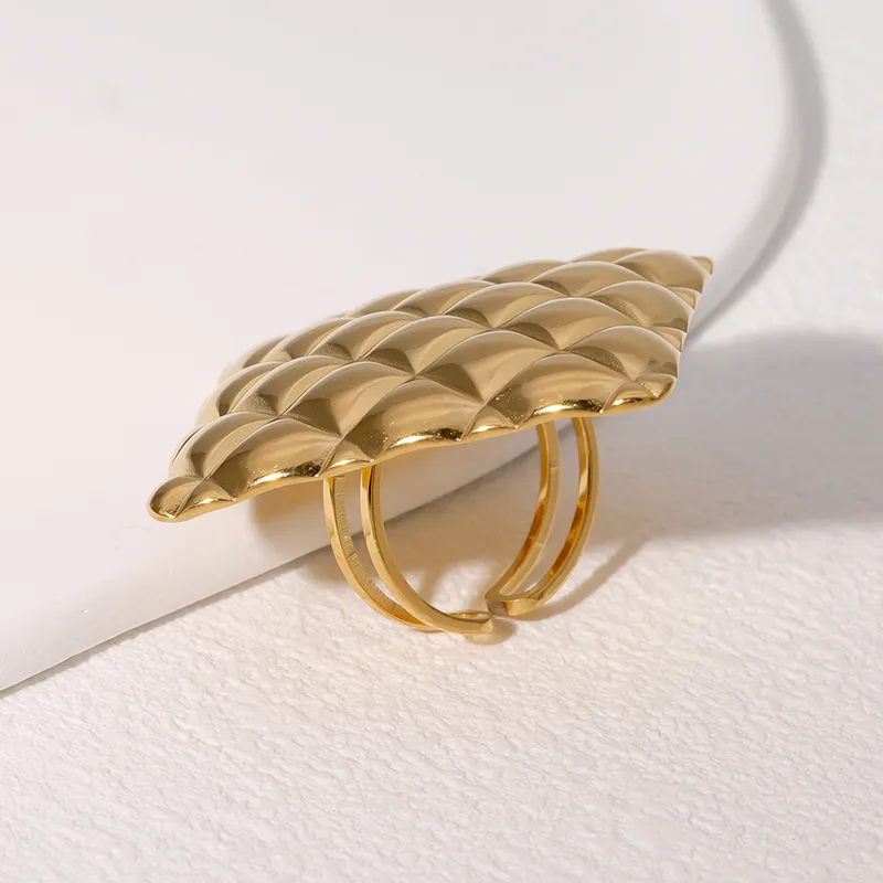 Wholesale Jewelry Modern Style Geometric Square Lingge 304 Stainless Steel 18K Gold Plated Open Rings