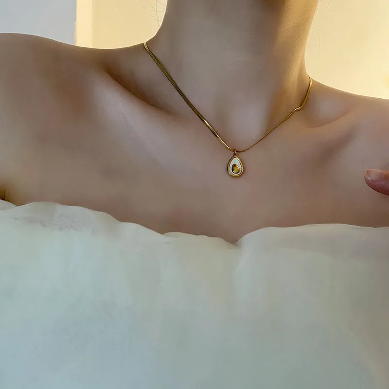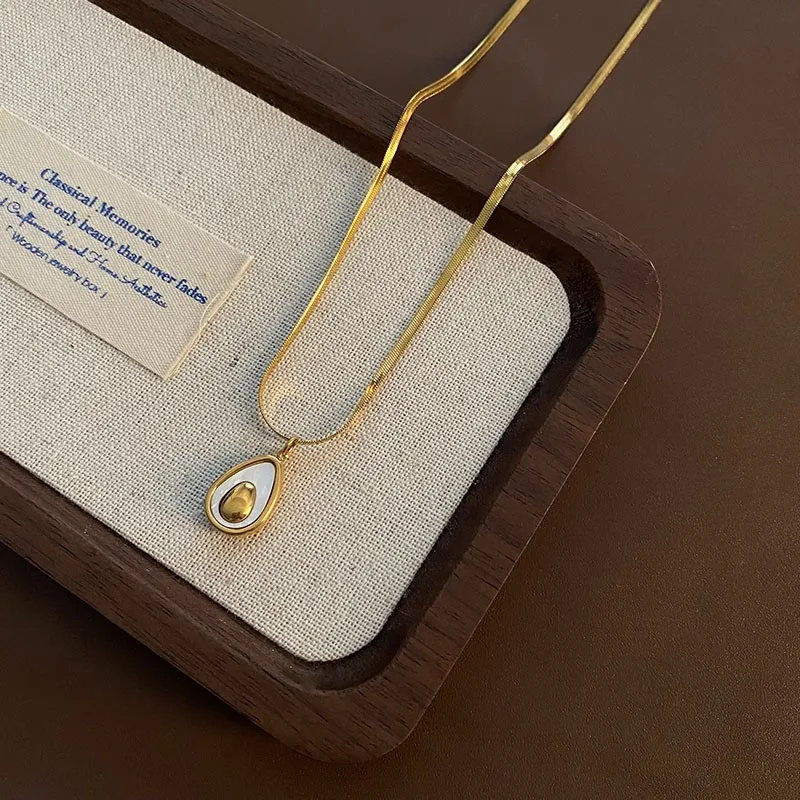 Wholesale Jewelry Retro Avocado Titanium Steel 18K Gold Plated Pendant Necklace