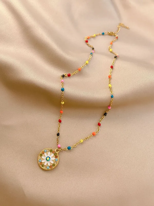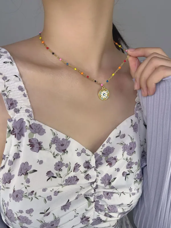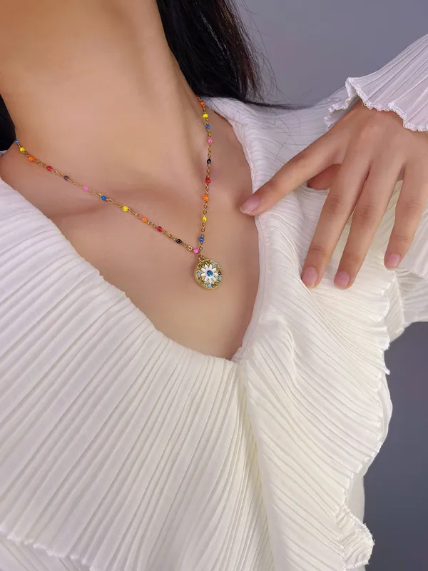 Wholesale Jewelry Retro Printing Round Titanium Steel Pendant Necklace