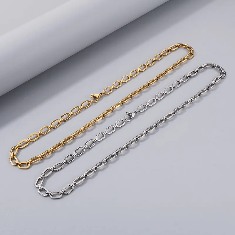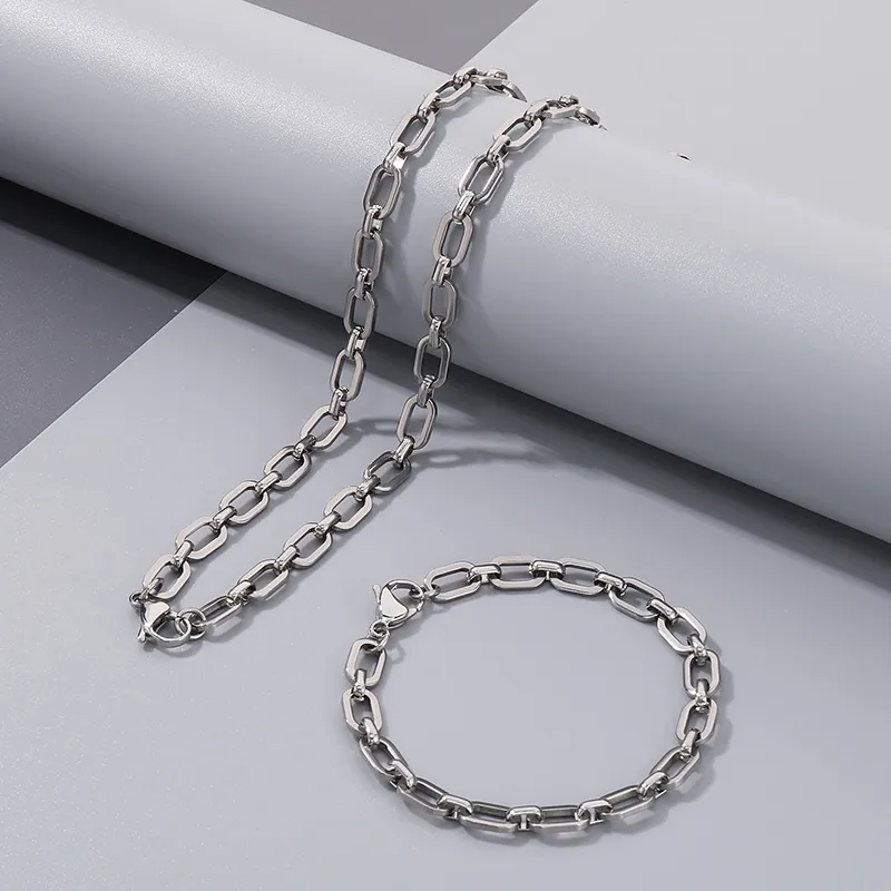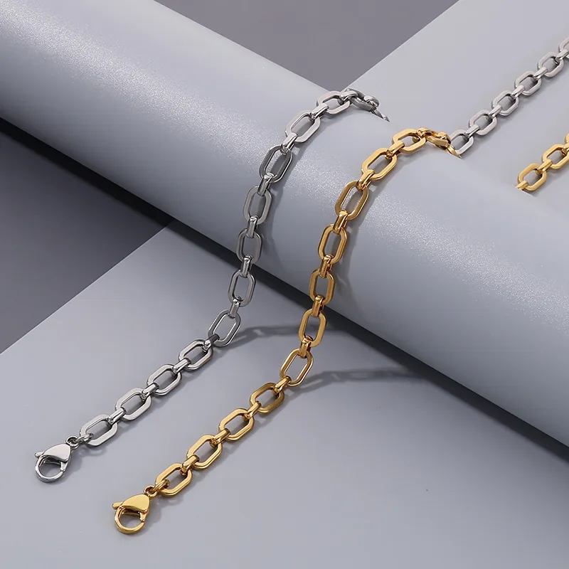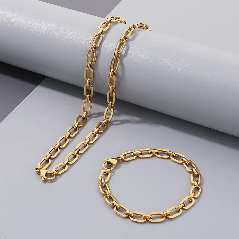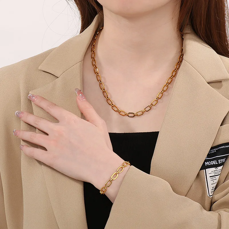 Wholesale Jewelry Simple Style Geometric Solid Color 304 Stainless Steel 18K Gold Plated Bracelets Necklace