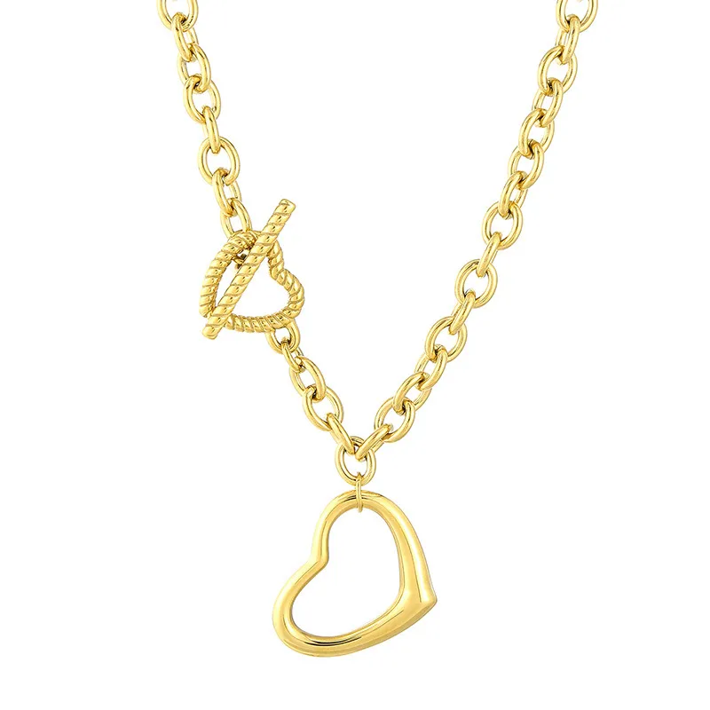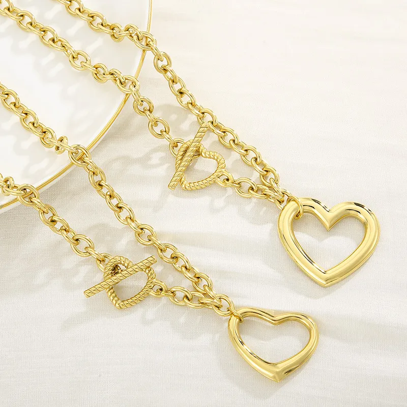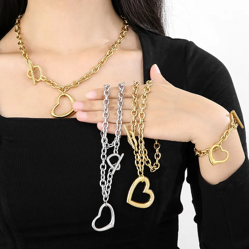 Wholesale Jewelry Simple Style Classic Style Heart Shape Titanium Steel 18K Gold Plated Plating Bracelets Necklace