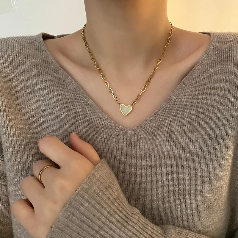 Wholesale Jewelry Simple Style Heart Shape Titanium Steel Titanium Steel 18K Gold Plated Necklace