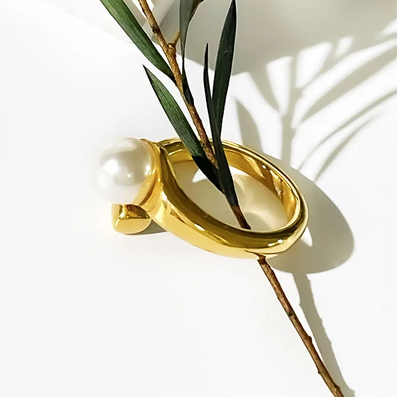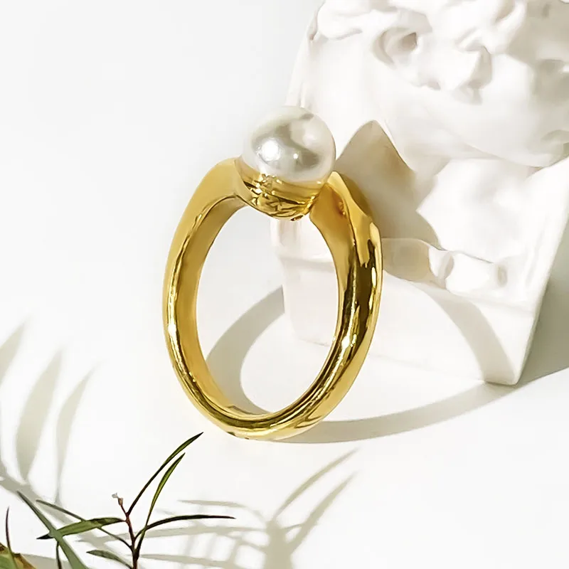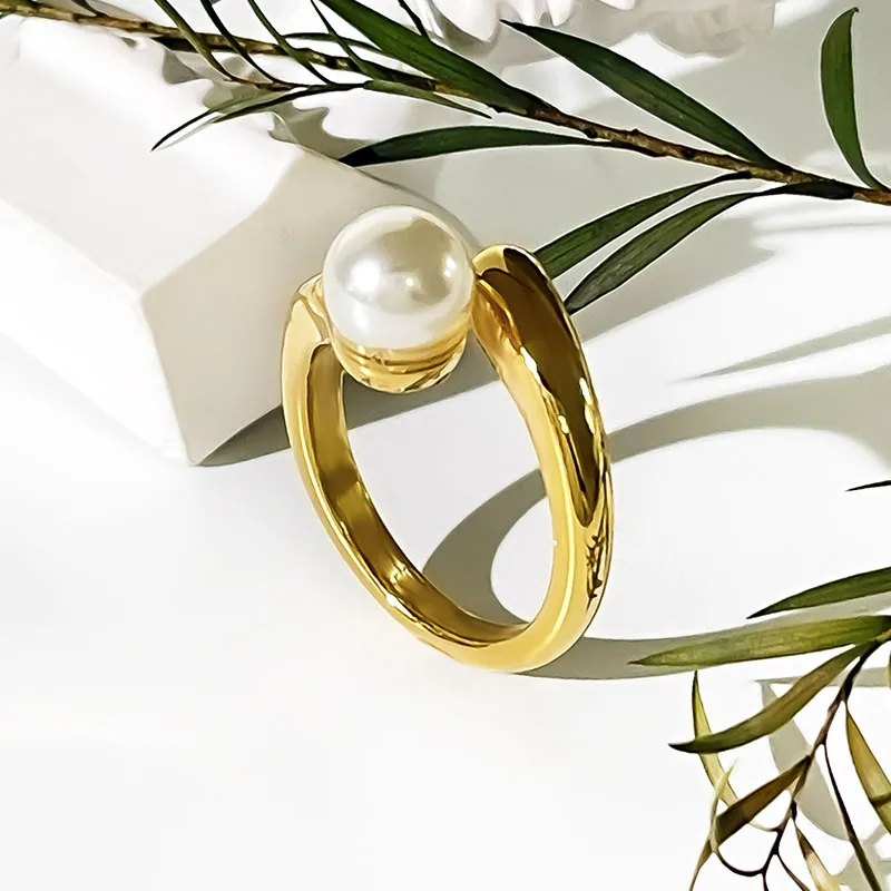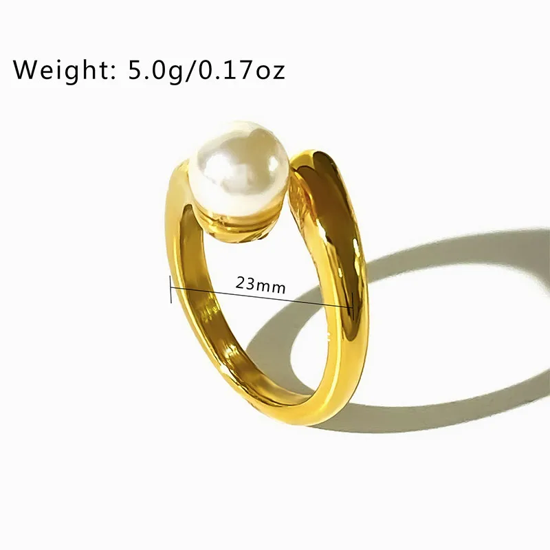 Wholesale Jewelry Simple Style Round Stainless Steel Artificial Pearls 18K Gold Plated Plating Inlay Open Rings
