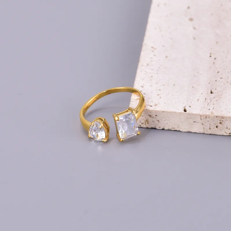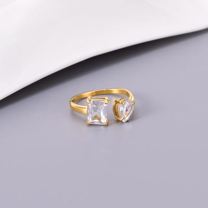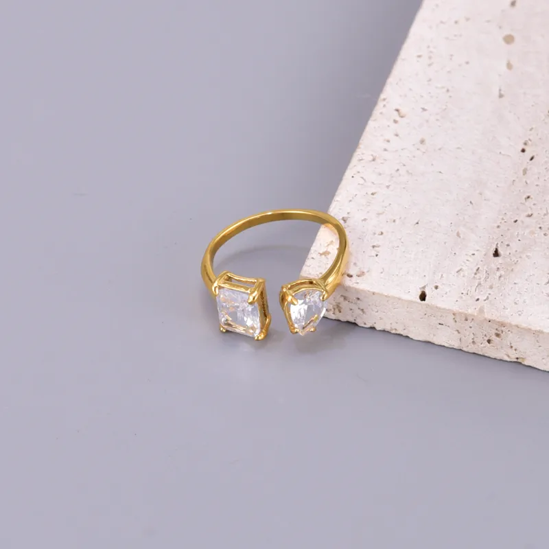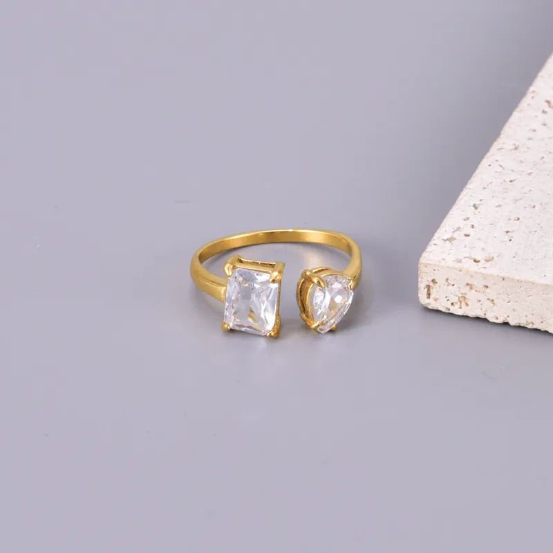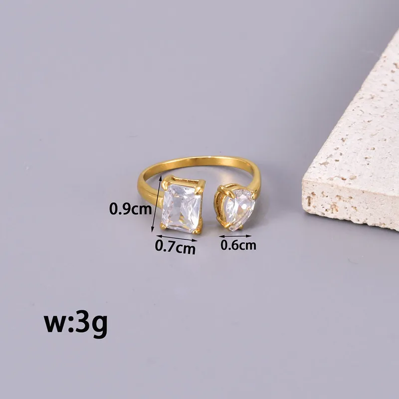 Wholesale Jewelry Simple Style Classic Style Solid Color 304 Stainless Steel Titanium Steel Rhinestones 18K Gold Plated Plating Inlay Open Rings