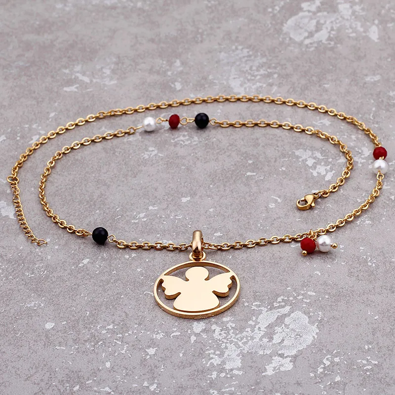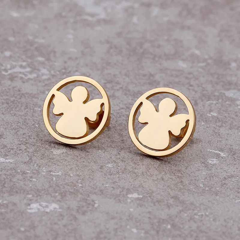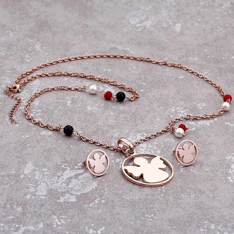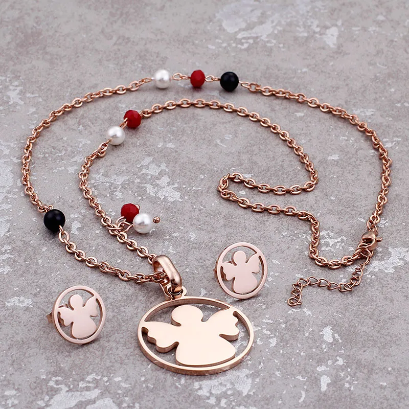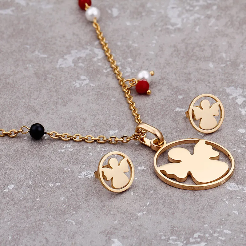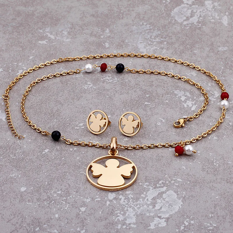 Wholesale Jewelry Sweet Angel Stainless Steel 18K Gold Plated Earrings Necklace