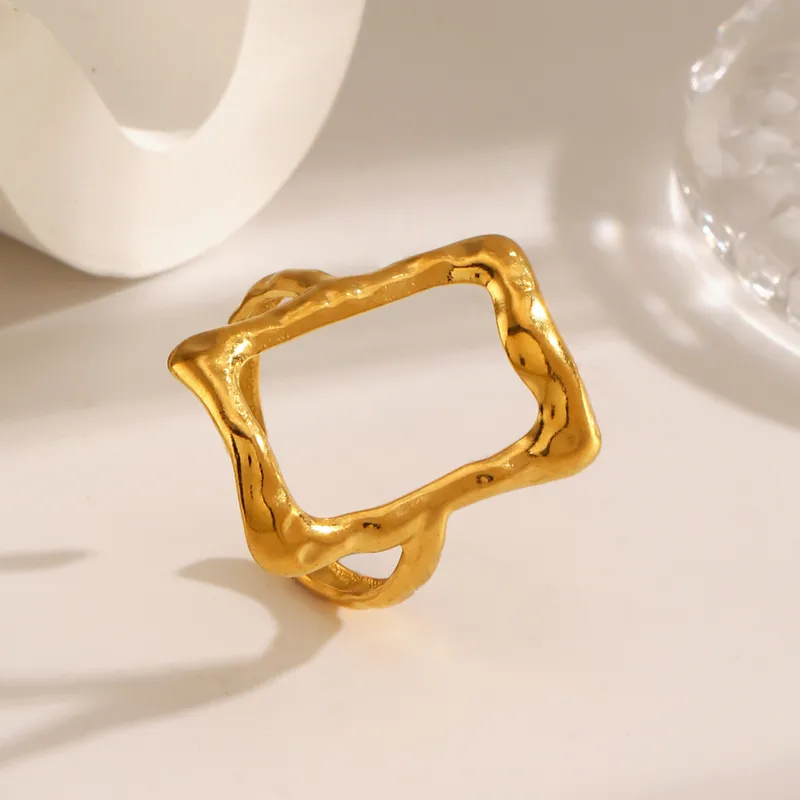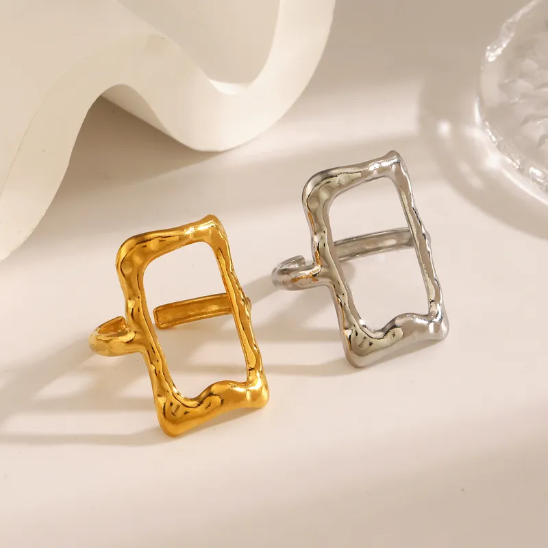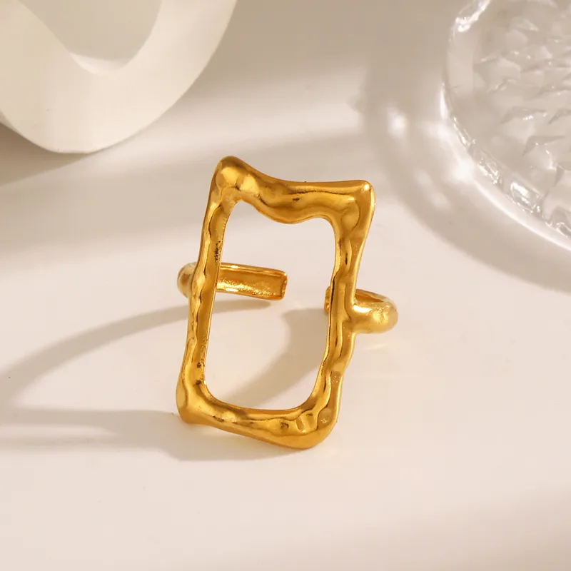 Wholesale Jewelry Vintage Style Rectangle 304 Stainless Steel 18K Gold Plated Plating Open Rings