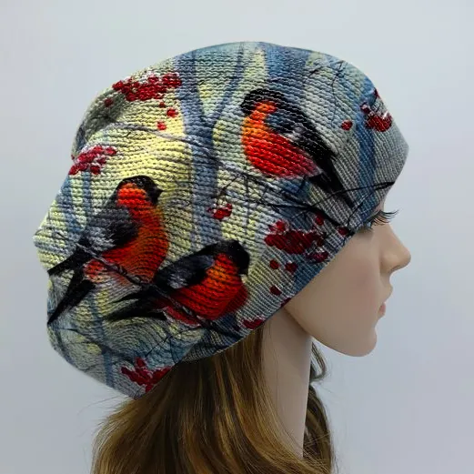 Ladies casual bird print hat