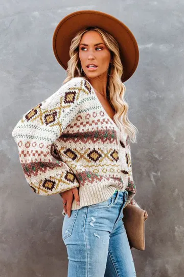 Wholesale Ladies Casual V-Neck Cardigan Sweater