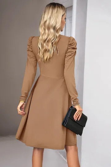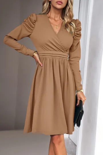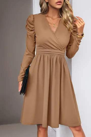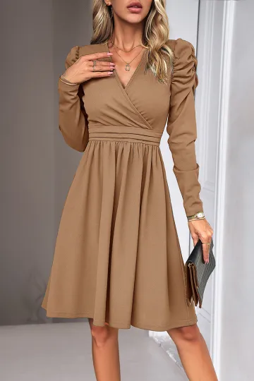 Wholesale Ladies Fashion Elegant Solid Color V-neck Long Sleeve Dress