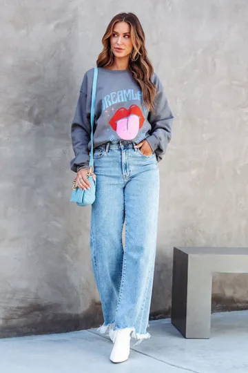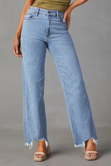Ladies Loose Casual Fashion Simple Tassel Straight Jeans