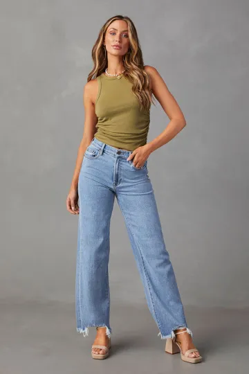 Wholesale Ladies Loose Casual Fashion Simple Tassel Straight Jeans