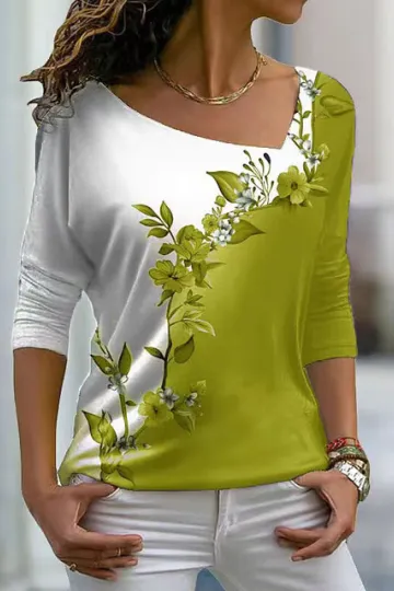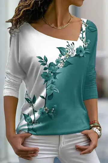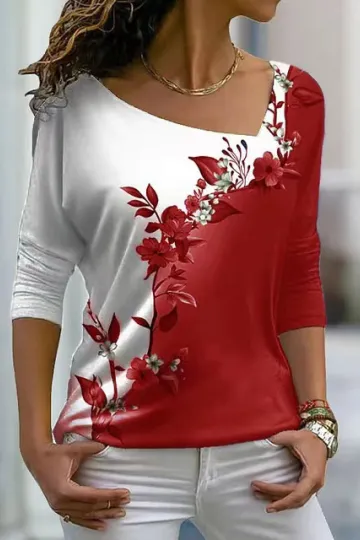 Ladies V Neck Floral T-Shirt Spring Long Sleeve Tops