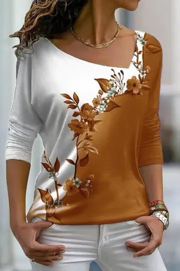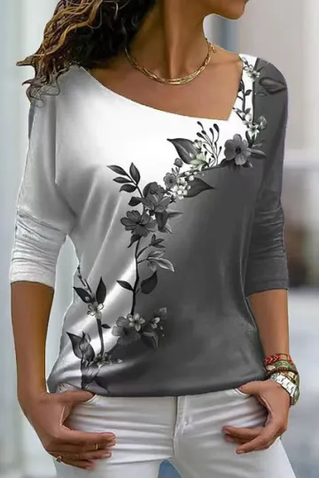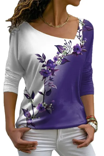 Wholesale Ladies V Neck Floral T-Shirt Spring Long Sleeve Tops