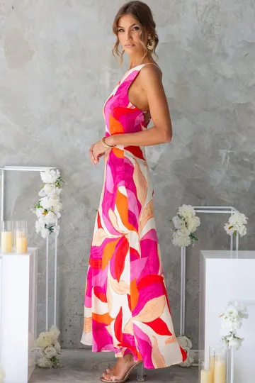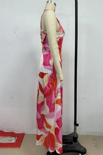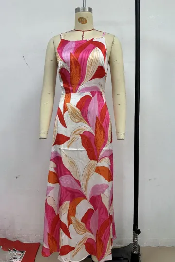 Wholesale Fashionable leaf print sleeveless backless dress