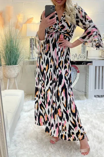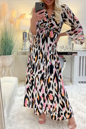 Wholesale Leopard Print Slinky Long Maxi Dress