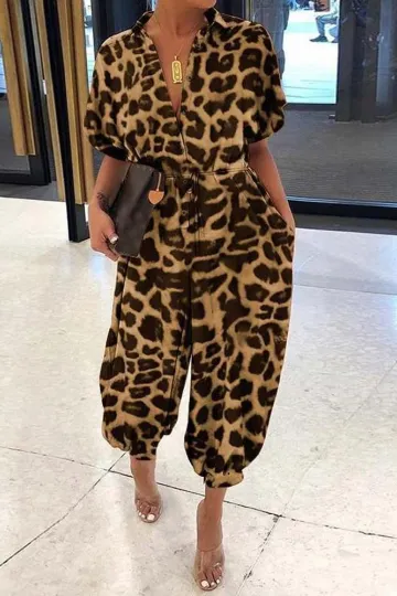 Wholesale Leopard Print Vintage Kurzarm-Overall
