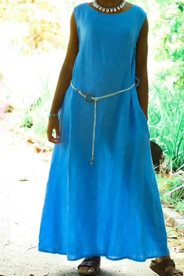 Wholesale Linen Sleeveless Boat Neck Long Solid Dress