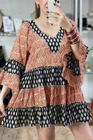 Wholesale Long Sleeves Mini Boho Dress
