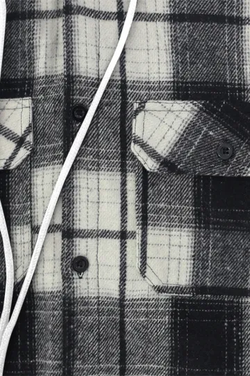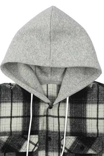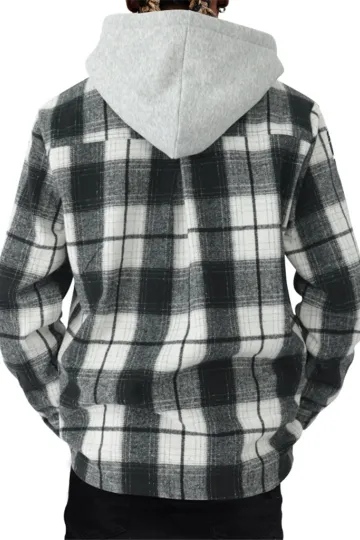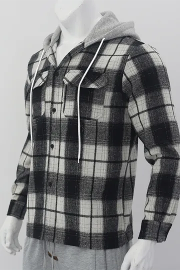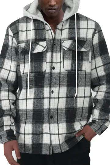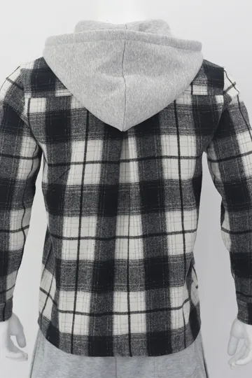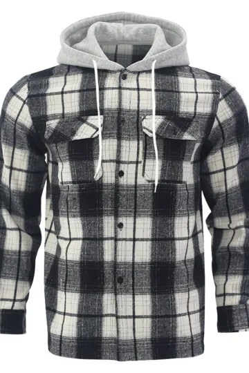 Wholesale Loose Casual Flannel Jacquard Long Sleeve Hooded Plaid Shirt
