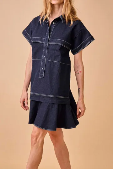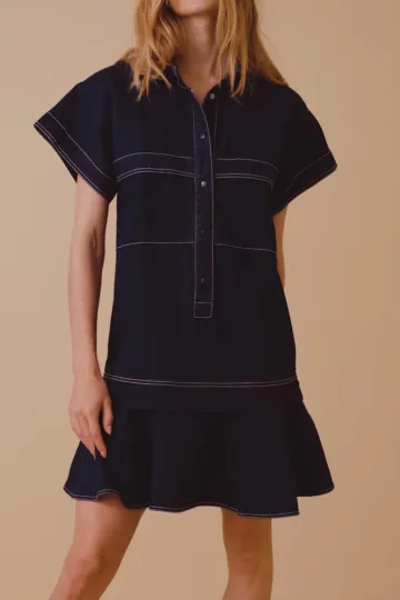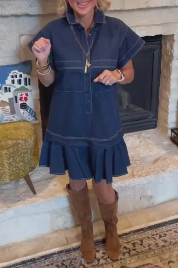 Low Rise Denim Shirt Collar Dress