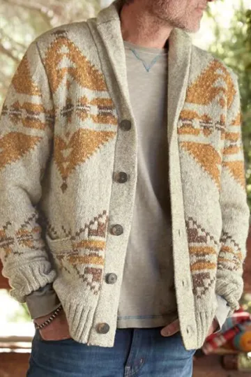 Men's Aztec Knit Cardigan Sweater Jacket