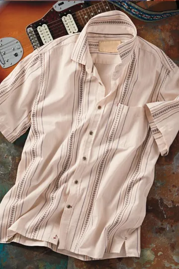 Men's Barcelona Stutter-step stripes Pattern Cotton Linen Shirt
