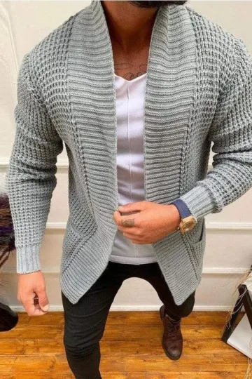 Men's cardigan sweater fashion striped casual knitted jacket men