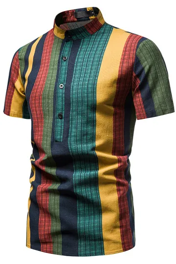 Wholesale Men's Casual Stand Collar Striped Print Shirt