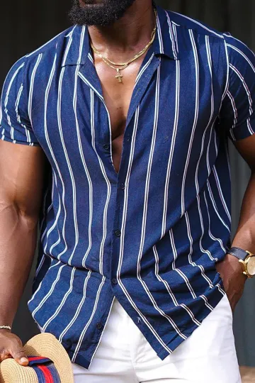 Wholesale Men's Casual Stripe Button-Down Polo Shirt